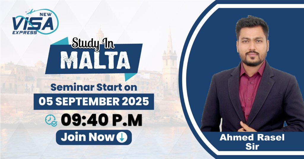 Free Seminar: Study in Malta with Ahmed Rasel Sir – Friday, 5th September 2025 at 9:40 PM